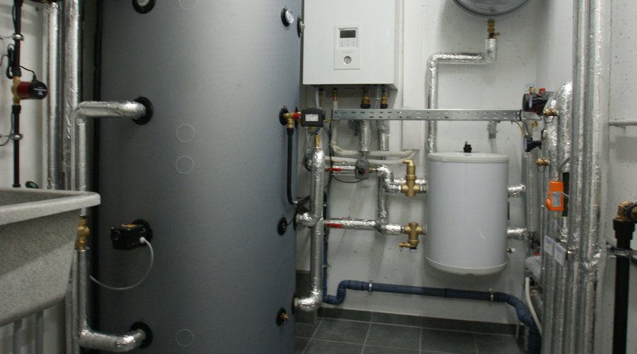 Technikraum mit Wärmepumpe und Wohnraumlüftung
